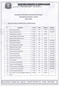 Classificação estagiários Ensino Médio: