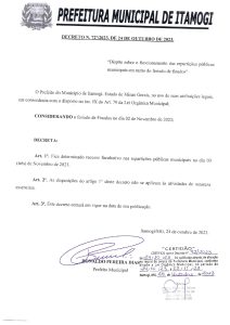 O Prefeito do Municipio de Itamogi. Estado de Minas Gerais, no uso de suas atribuições legais.