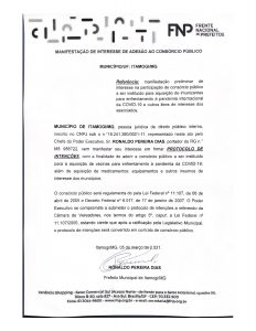 A assinatura do documento tem como finalidade a adesão ao Consórcio Público, que tem como objetivo a compra de vacinas para enfrentamento a pandemia do COVID-19, além da aquisição de medicamentos, equipamentos e outros insumos de interesse dos municípios.