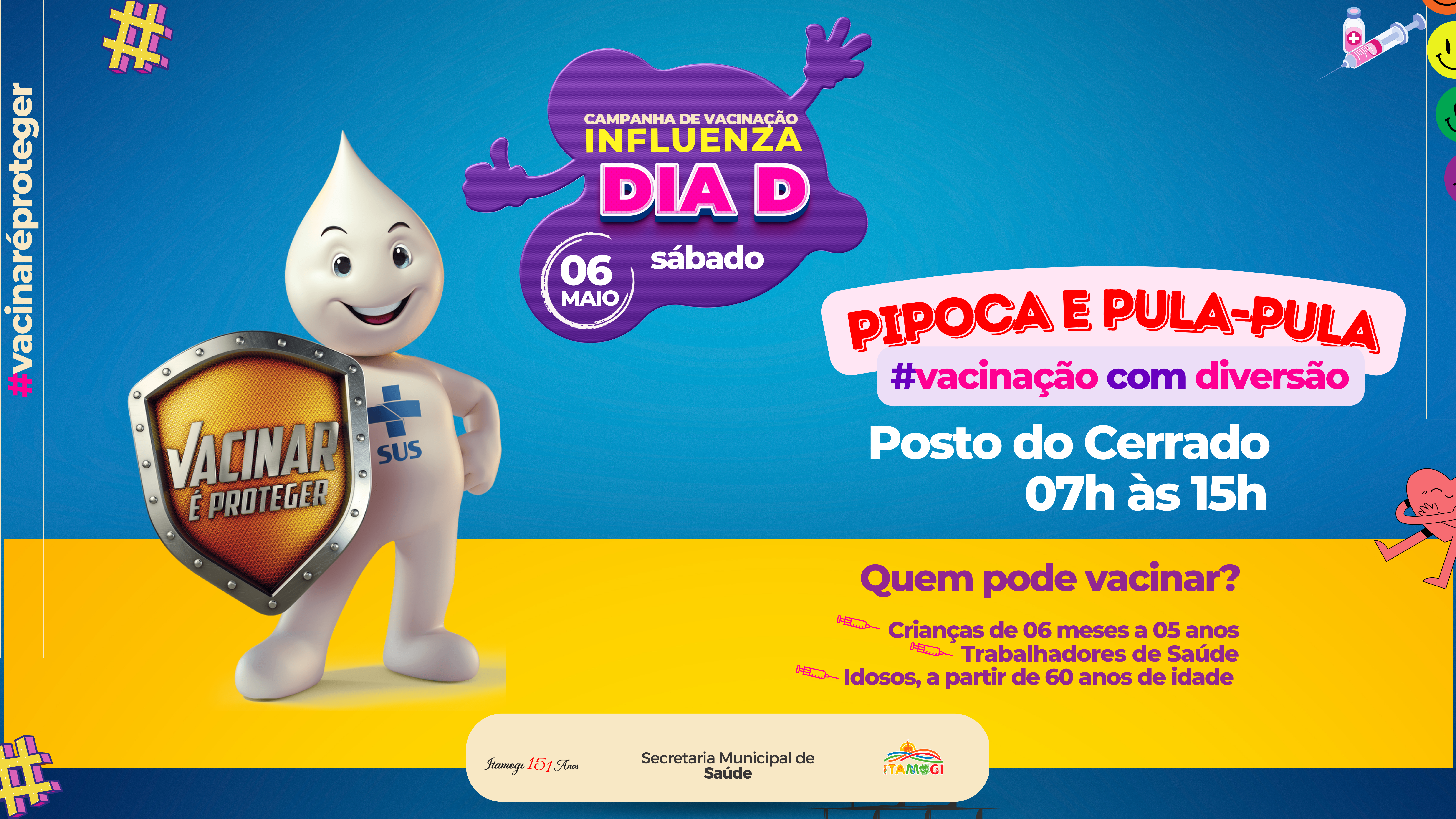 Notícias CAMPANHA DE VACINAÇÃO DIA D 3 de maio de 2023 Atenção para o Dia D da vacinação!!! É sábado, 06/05 das 07 às 15h. No Posto de Saúde Do Cerrado. Levar cartão sus e cartão de vacina. Não percam, venha vacinar tragam seus filhos e sua família!
