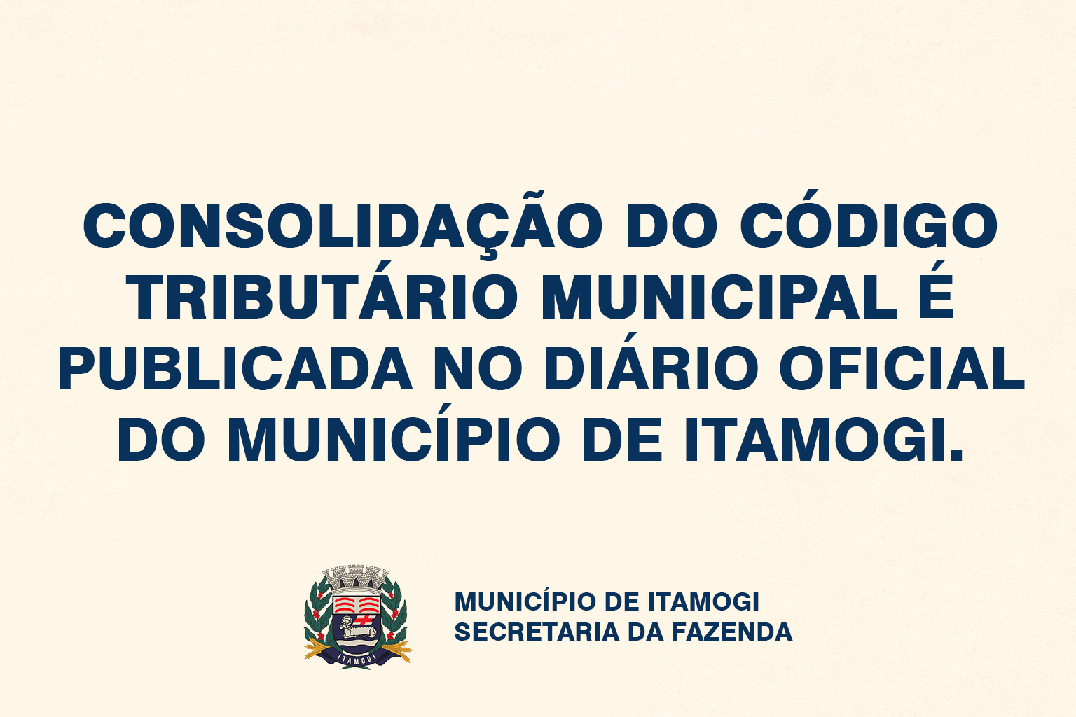 MUNICÍPIO DE ITAMOGI PUBLICA A CONSOLIDAÇÃO DO CÓDIGO TRIBUTÁRIO MUNICIPAL