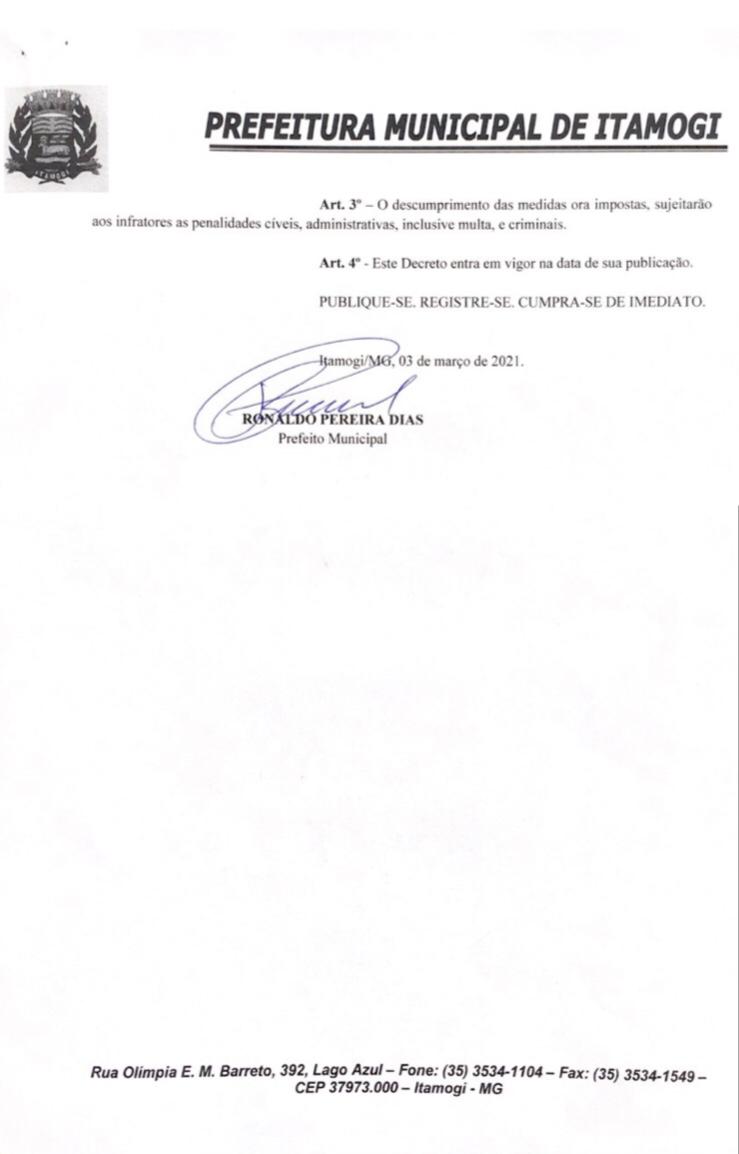 O decreto vem em consonância com decretos anteriores, que visam estabelecer medidas no enfrentamento à pandemia do novo coronavírus, frente ao crescente número de casos em Itamogi e região, bem como em todo o país.