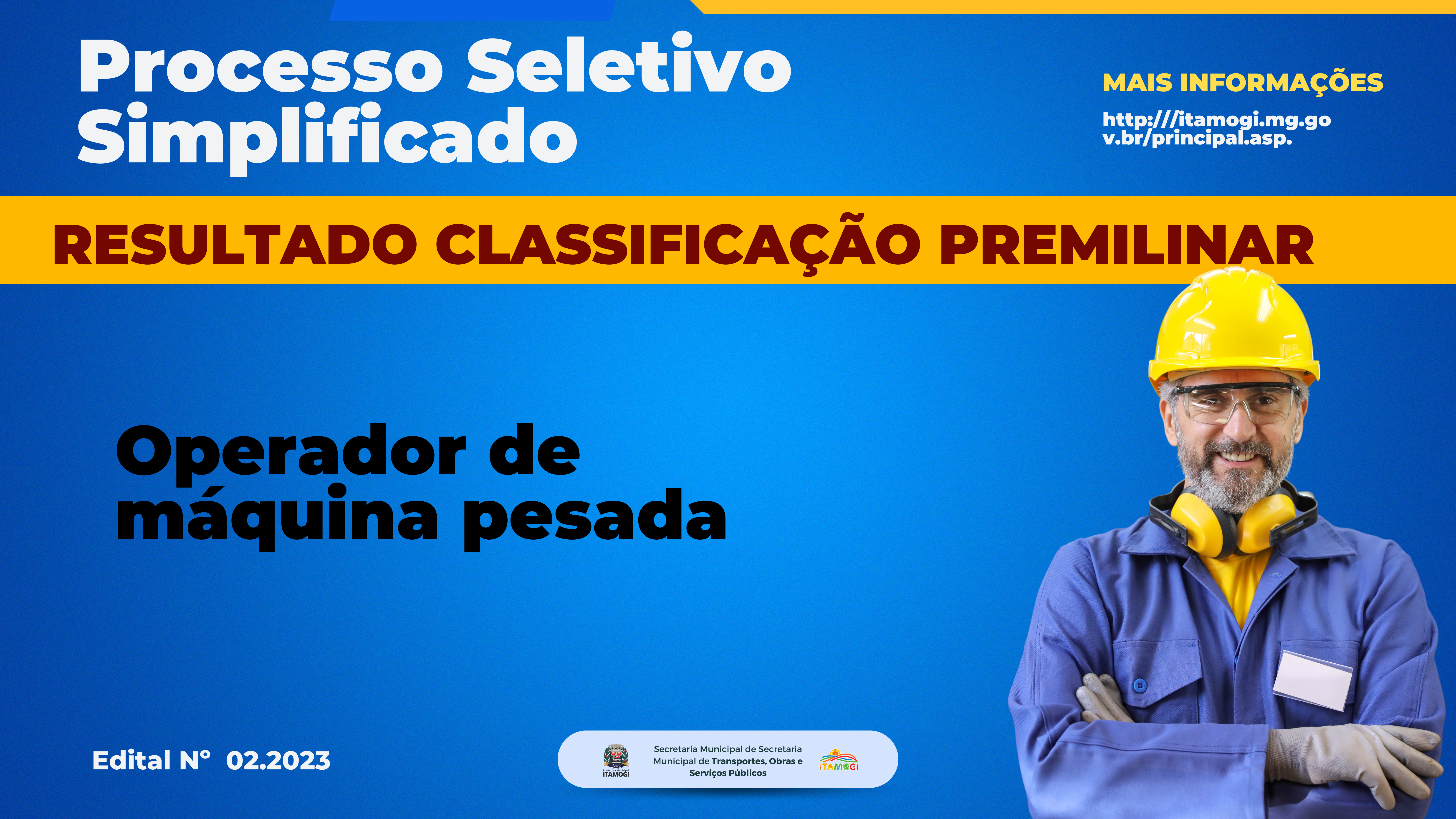 Processo Seletivo Simplificado N.002/2023, Operador de Máquina Pesada.